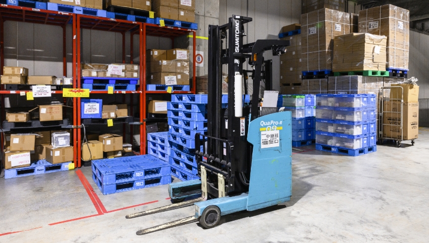 重い荷物の運搬や、高所にあるアイテムの積み降ろしで活躍。未経験者にはリフト運転技能の受講支援もあります。スキルアップのチャンス!